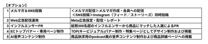 今回新たに提供するサービスでは、「商品掲載・運用」をベースに、目的やブランドに応じた多彩なオプションを組み合わせてご提供いたします