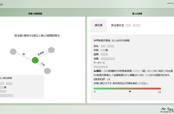 今回のアップデートではデータベースの拡充に加え、AIによる要約・スコアリング機能を追加。散在する情報をAIが整理し、マネーロンダリング対策の専門知識を活用して誰でも理解しやすい形で提供。リスク管理を幅広い業界で支援します。