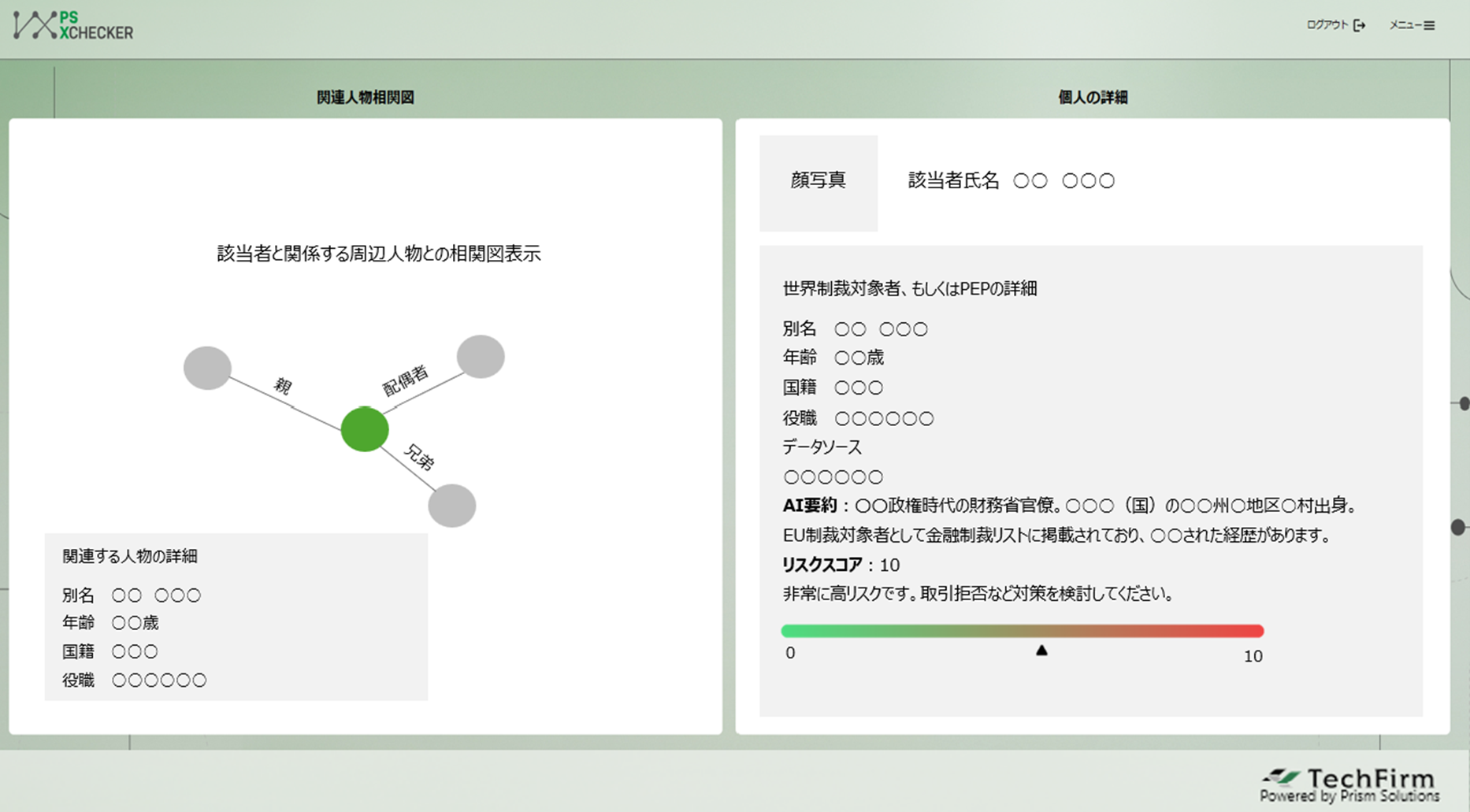 ICTソリューション事業を手掛けるテックファーム株式会社(本社:東京都新宿区、代表取締役社長:千原信悟、以下「テックファーム」)は、グループ会社で米国カジノ施設向けソリューション及びマネーロンダリング対策のコンサルティング、ソリューションの開発を行うPrism Solutions Inc.(米国ネバダ州ラスベガス、代表取締役社長 筒井雄一朗、以下「PSI」)の知見を活かし開発した「PSクロスチェッカー®(PS XCHECKER®)」の第2弾アップデートを実施しました。最新のAI技術と独自データベースの拡充により、これまで経験や感覚に頼りがちだったリスク判断を、数値と根拠に基づいたへと進化させます。